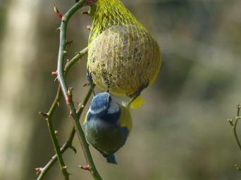 Keywords: tit blue tit cyanistes caeruleus parus caeruleus paridae small bird bird animal eat peck depend claws out fat balls food bird seed feed network hang winter