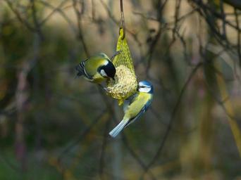 Keywords: tit blue tit cyanistes caeruleus parus caeruleus paridae small bird bird animal eat peck depend claws out fat balls food bird seed feed network hang winter parus major passeri songbird sparrow bird