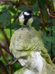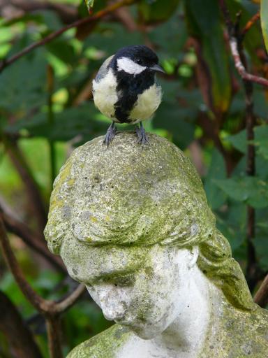 Keywords: tit parus major fig stone figure madonna sit head cheeky stone woman statue sculpture