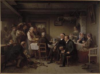 | Keywords: Tithe Collection in SkÃ¥ne (Bengt Nordenberg) - Nationalmuseum - 18002.tif Artwork Creator Bengt Nordenberg Tithe Collection in SkÃ¥ne The painting of this tithes meeting in southern Sweden was admired by Nordenberg ™s contemporaries as a picture from a distant prosperous past Tithes were taxes paid to the church amounting to one-tenth of the harvest He belonged to the Düsseldorf school of painting which was characterised by dramatic images of nature and romanticised history painting But Nordenberg also made many study tours in Sweden collecting material to ensure a correct depiction of the peasantry MÃ¥lningen beundrades av sin samtid som en skildring frÃ¥n en svunnen välmÃ¥ende tid Tionde var den skatt som uppbars av kyrkan och som motsvarade en tiondel av jordbrukets produktion Nordenberg tillhörde Düsseldorfskolan som kännetecknades av dramatiserade naturskildringar och romantiskt historiemÃ¥leri Men Nordenberg företog ocksÃ¥ mÃ¥nga studieresor i Sverige och samlade material för att kunna göra korrekta avbilningar av allmogemiljöer header The painting of this tithes meeting in southern Sweden was admired by Nordenberg ™s contemporaries as a picture from a distant prosperous past Tithes were taxes paid to the church amounting to one-tenth of the harvest He belonged to the Düsseldorf school of painting which was characterised by dramatic images of nature and romanticised history painting But Nordenberg also made many study tours in Sweden collecting material to ensure a correct depiction of the peasantry MÃ¥lningen beundrades av sin samtid som en skildring frÃ¥n en svunnen välmÃ¥ende tid Tionde var den skatt som uppbars av kyrkan och som motsvarade en tiondel av jordbrukets produktion Nordenberg tillhörde Düsseldorfskolan som kännetecknades av dramatiserade naturskildringar och romantiskt historiemÃ¥leri Men Nordenberg företog ocksÃ¥ mÃ¥nga studieresor i Sverige och samlade material för att kunna göra korrekta avbilningar av allmogemiljöer 1865 Olja pÃ¥ duk Size cm 123 91 Framed Size cm 162 127 13 Institution Nationalmuseum Stockholm Signerad B Nordenberg 1865 accession number 18002 NM 999 place of creation Erik Cornelius / Nationalmuseum Nationalmuseum Stockholm cooperation project Licensed-PD-Art PD-old-auto PD-Nationalmuseum_Stockholm 1902 Media contributed by Nationalmuseum Stockholm 2016-10 Paintings in the Nationalmuseum Stockholm Bengt Nordenberg |