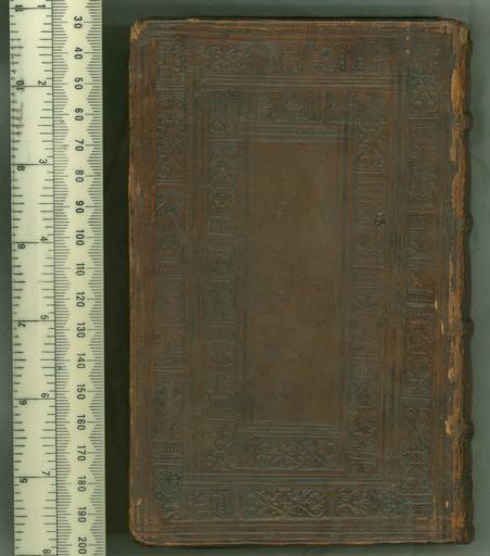 | Keywords: -Titi Liuii ... libri omnes ... recogniti, & ... denuo? editi. Quibus adiuncta est chronologia nova, etc.- -Francofurti ad Mœnum - impressum apud Georgium Coruinum; impensis Sigismundi & Io - Lower cover (C143b4).jpg Style Panel design; Caption Lower cover; Colour Brown; Edge Red exhibition history Decorative Technique Tooled in blind; Cover Material Calf In fact the first ten books only with the Epitomes of Florus of books 1-20 No more published in this edition Imperfect; wanting the titleleaf and dedicatory epistle which are supplied in xerocopy from a copy in the Niedersa chsische Staats- und Universita tsbibliothek Go ttingen In a late sixteenth-century Oxford blind-tooled brown calf binding object history Text 1578; Frankfurt; Unspecified object type Cc-zero place of creation Binding England place of discovery Oxford bookbinding 1500-1640 including a supplement to Neil Ker's fragments of medieval manuscripts used as pastedowns in Oxford bindings / David Pearson David Pearson 1955- Oxford Oxford Bibliographical Society 2000 British Library image http //www bl uk/catalogues/bookbindings/LargeImage aspx RecordId 020-000017545 ImageId ImageId 56578 Copyright BL Titi Liuii libri omnes recogniti denuo editi Quibus adiuncta est chronologia nova etc Francofurti ad Mœnum impressum apud Georgium Coruinum; impensis Sigismundi Iohannis Feyrabendinorum 1578 Uploaded with GWToolset Titi Liuii libri omnes recogniti denuo editi Quibus adiuncta est chronologia nova etc Francofurti ad Mœnum impressum apud Georgium Coruinum; impensis Sigismundi Io - Lower cover C143b4 http //www webarchive org uk/bldatasets/bindings/c143b4 jpg Bookbinding 16th-century bookbinding British Library Bookbindings -Titi Liuii ... libri omnes ... recogniti, & ... denuo? editi. Quibus adiuncta est chronologia nova, etc.- -Francofurti ad Mœnum - impressum apud Georgium Coruinum; impensis Sigismundi & Io - Lower cover (C143b4).jpg Style Panel design; Caption Lower cover; Colour Brown; Edge Red exhibition history Decorative Technique Tooled in blind; Cover Material Calf In fact the first ten books only with the Epitomes of Florus of books 1-20 No more published in this edition Imperfect; wanting the titleleaf and dedicatory epistle which are supplied in xerocopy from a copy in the Niedersa chsische Staats- und Universita tsbibliothek Go ttingen In a late sixteenth-century Oxford blind-tooled brown calf binding object history Text 1578; Frankfurt; Unspecified object type Cc-zero place of creation Binding England place of discovery Oxford bookbinding 1500-1640 including a supplement to Neil Ker's fragments of medieval manuscripts used as pastedowns in Oxford bindings / David Pearson David Pearson 1955- Oxford Oxford Bibliographical Society 2000 British Library image http //www bl uk/catalogues/bookbindings/LargeImage aspx RecordId 020-000017545 ImageId ImageId 56578 Copyright BL Titi Liuii libri omnes recogniti denuo editi Quibus adiuncta est chronologia nova etc Francofurti ad Mœnum impressum apud Georgium Coruinum; impensis Sigismundi Iohannis Feyrabendinorum 1578 Uploaded with GWToolset Titi Liuii libri omnes recogniti denuo editi Quibus adiuncta est chronologia nova etc Francofurti ad Mœnum impressum apud Georgium Coruinum; impensis Sigismundi Io - Lower cover C143b4 http //www webarchive org uk/bldatasets/bindings/c143b4 jpg Bookbinding 16th-century bookbinding British Library Bookbindings |