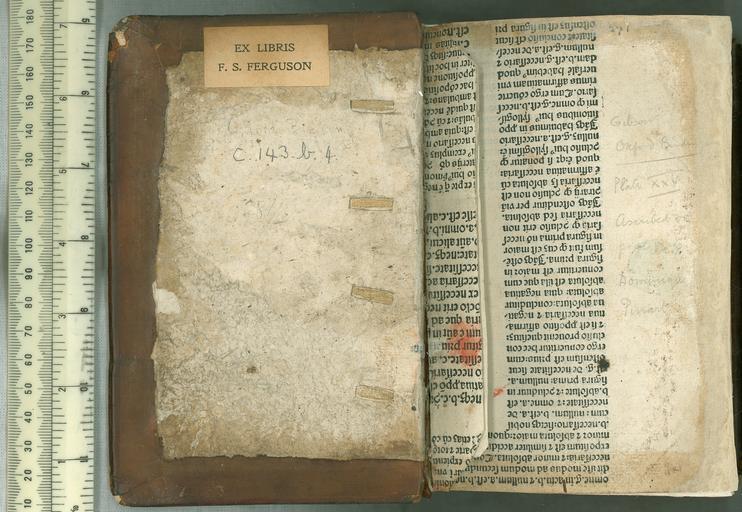 | Keywords: -Titi Liuii ... libri omnes ... recogniti, & ... denuo? editi. Quibus adiuncta est chronologia nova, etc.- -Francofurti ad Mœnum - impressum apud Georgium Coruinum; impensis Sigismundi & Io - Upper cover, verso (C143b4).jpg Style Panel design; Caption Upper cover verso; Colour Brown; Edge Red exhibition history Decorative Technique Tooled in blind; Cover Material Calf In fact the first ten books only with the Epitomes of Florus of books 1-20 No more published in this edition Imperfect; wanting the titleleaf and dedicatory epistle which are supplied in xerocopy from a copy in the Niedersa chsische Staats- und Universita tsbibliothek Go ttingen In a late sixteenth-century Oxford blind-tooled brown calf binding object history Text 1578; Frankfurt; Unspecified object type Cc-zero place of creation Binding England place of discovery Oxford bookbinding 1500-1640 including a supplement to Neil Ker's fragments of medieval manuscripts used as pastedowns in Oxford bindings / David Pearson Oxford Oxford Bibliographical Society 2000 British Library image http //www bl uk/catalogues/bookbindings/LargeImage aspx RecordId 020-000017548 ImageId ImageId 56581 Copyright BL Titi Liuii libri omnes recogniti denuo editi Quibus adiuncta est chronologia nova etc Francofurti ad Mœnum impressum apud Georgium Coruinum; impensis Sigismundi Iohannis Feyrabendinorum 1578 Uploaded with GWToolset Titi Liuii libri omnes recogniti denuo editi Quibus adiuncta est chronologia nova etc Francofurti ad Mœnum impressum apud Georgium Coruinum; impensis Sigismundi Io - Upper cover verso C143b4 http //www webarchive org uk/bldatasets/bindings/c143b4u jpg Bookbinding 16th-century bookbinding British Library Bookbindings -Titi Liuii ... libri omnes ... recogniti, & ... denuo? editi. Quibus adiuncta est chronologia nova, etc.- -Francofurti ad Mœnum - impressum apud Georgium Coruinum; impensis Sigismundi & Io - Upper cover, verso (C143b4).jpg Style Panel design; Caption Upper cover verso; Colour Brown; Edge Red exhibition history Decorative Technique Tooled in blind; Cover Material Calf In fact the first ten books only with the Epitomes of Florus of books 1-20 No more published in this edition Imperfect; wanting the titleleaf and dedicatory epistle which are supplied in xerocopy from a copy in the Niedersa chsische Staats- und Universita tsbibliothek Go ttingen In a late sixteenth-century Oxford blind-tooled brown calf binding object history Text 1578; Frankfurt; Unspecified object type Cc-zero place of creation Binding England place of discovery Oxford bookbinding 1500-1640 including a supplement to Neil Ker's fragments of medieval manuscripts used as pastedowns in Oxford bindings / David Pearson Oxford Oxford Bibliographical Society 2000 British Library image http //www bl uk/catalogues/bookbindings/LargeImage aspx RecordId 020-000017548 ImageId ImageId 56581 Copyright BL Titi Liuii libri omnes recogniti denuo editi Quibus adiuncta est chronologia nova etc Francofurti ad Mœnum impressum apud Georgium Coruinum; impensis Sigismundi Iohannis Feyrabendinorum 1578 Uploaded with GWToolset Titi Liuii libri omnes recogniti denuo editi Quibus adiuncta est chronologia nova etc Francofurti ad Mœnum impressum apud Georgium Coruinum; impensis Sigismundi Io - Upper cover verso C143b4 http //www webarchive org uk/bldatasets/bindings/c143b4u jpg Bookbinding 16th-century bookbinding British Library Bookbindings |