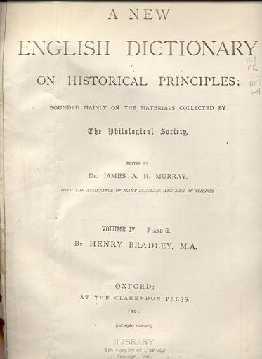 Keywords: Title Page of the NED.jpg Title page of A New English Dictionary 1901 PD-old Title pages from the United Kingdom 1901 books English dictionaries