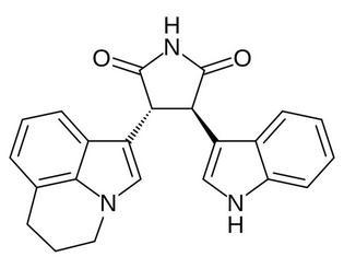 Keywords: Tivantinib structure.svg Chemical structure of w tivantinib ARQ 197 Own 20 10 25 February 2014 UTC Ed Edgar181 thumb leftthumb left Ball-and-stick mode Protein kinase inhibitors Bisindolylmaleimides