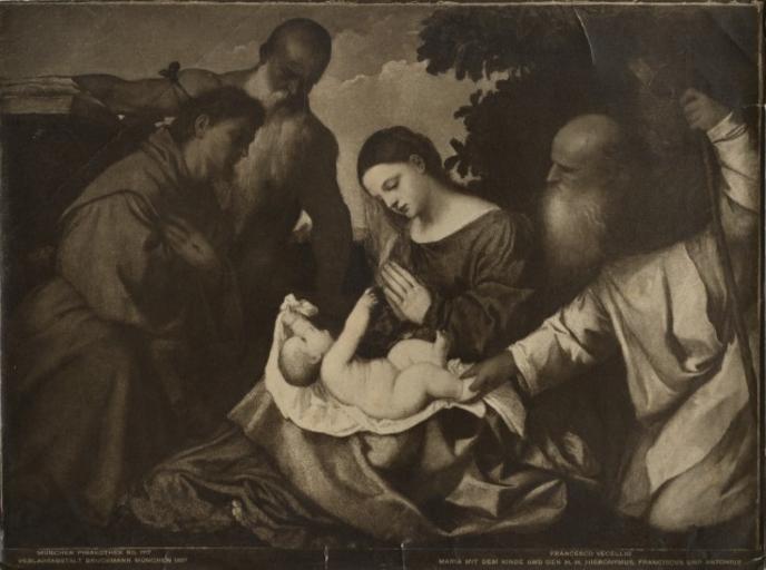 | Keywords: Tiziano, madonna e santi monaco.jpg title Jungfrau und Heilige Madonna madonna e santi http //fe fondazionezeri unibo it/catalogo/scheda jsp decorator layout apply true tipo_scheda OA id 44335 titolo Vecellio+Tiziano+ 2c+Madonna+con+Bambino 2c+san+Francesco+d 26 23039 3bAssisi 2c+san+Girolamo+e+sant 26 23039 3bAntonio+Abate ~ 1519 painting creator Titian PD-old-100 Sacra Conversazione by Titian Paintings of the Adoration of the Child 1510s paintings in Bavaria Ansbach 16th-century religious paintings in Germany 16th-century oil on canvas paintings in Germany 1510s paintings from Italy 1510s religious paintings |