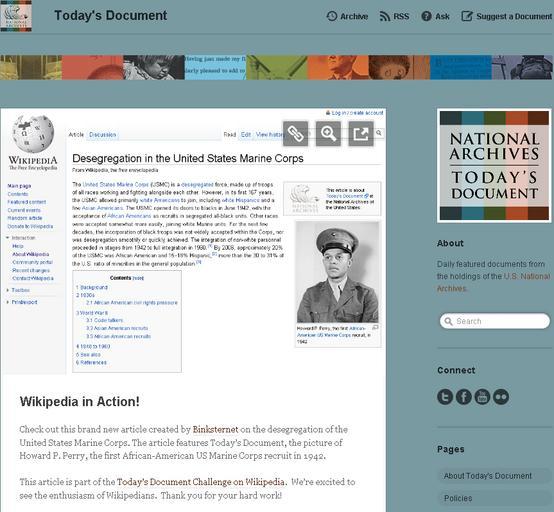 | Keywords: Today's Document tumblr snapshot.png Today's Document challenge http //todaysdocument tumblr com/post/6074288996/wikipedia-in-action-check-out-this-brand-new notes US National Archives and Records Administration 2011-06-01 PD-USGov NARA-cooperation National Archives and Records Administration Screenshots with English Internet screenshots |