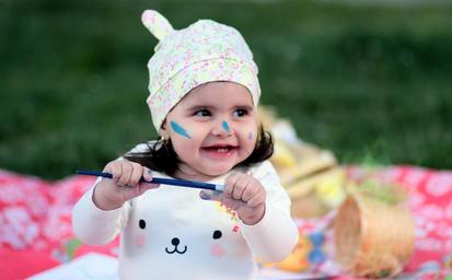 Keywords: toddler painting girl watercolors funny