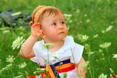 Keywords: toddler traditional costume flowers grass green