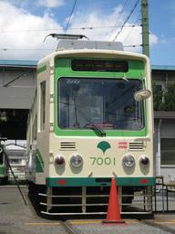 Keywords: Toden 7001 August 2010.jpg ja 7000形のトップナンバーの7001号車 元は7055号車 投稿 が自分で撮影 して私は神になった 平成22年8 ごろかな? Cc-zero Traffic cones Arakawa tramway car 7001 Arakawa Tram Depot