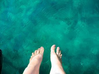 Keywords: Sitting on the dock, toes in the water blue summer lake feet water dock toes ripple bare toering