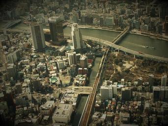 Keywords: tokyo japan city tourism bridge building houses aerial view nipon asia avenue river architecture channel urban light cities capital landscape sunny day urban landscape construction street historic buildings people