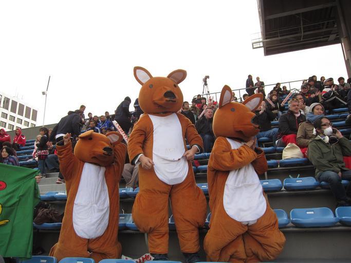 Keywords: Tokyo Sevens 2012 3.JPG en Tokyo Sevens 2012 in Chichibunomiya Rugby Stadium ja 京セブンズ2012 own Waka77 2012-04-12 Cc-zero Rugby sevens Chichibunomiya Rugby Stadium 2012 in Tokyo Animal costumes Kangaroos in art