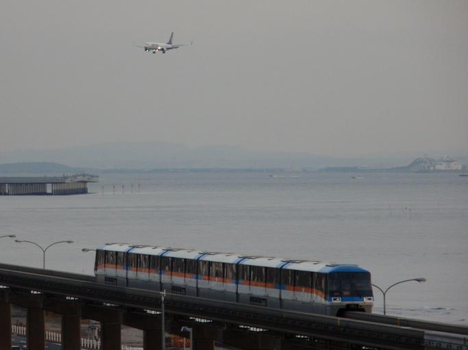 | Keywords: TokyoMonorail 1078 and SKY B737-800 20101212.jpg en EMU type 1000 of Tokyo Monorail The airplane that is landing in the rear side is B737-800 of Skymark Airlines Tokyo Monorail 1000 series Boeing 737-800 Skymark Airlines Tokyo International Airport Airliners and trains |