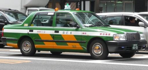 Keywords: Tokyomusen-kokusan.jpg en Tokyo Musen taxi ja 京無線の国産自動車のタクシー own Photo by me Ypy31 2008//4/29 Taxis in Tokyo Green white yellow vehicles Toyota Crown Comfort in Japan