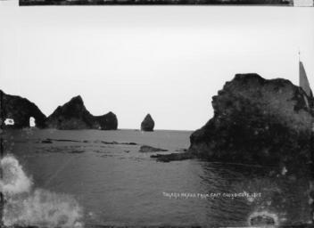 | Keywords: blackandwhite monochrome outdoor black and white View of Tolaga Heads from Captain Cook's Cove, Gisborne. Shows rugged rock formations known as "The Haystacks" at the entrance to the harbour. Photograph taken between 1906 and 1912, by William Archer Price. Inscriptions: Inscribed - Photographer's title on negative -bottom right: Tolago Heads from Capt. Cooks Cove. 151C. Quantity: 1 b&w original negative(s). Physical Description: Dry plate glass negative Tolaga Heads from Captain Cook's Cove. Price, William Archer, 1866-1948 :Collection of post card negatives. Ref: 1/2-001230-G. Alexander Turnbull Library, Wellington, New Zealand. natlib.govt.nz/records/22778993 View of Tolaga Heads from Captain Cook's Cove, Gisborne. Shows rugged rock formations known as "The Haystacks" at the entrance to the harbour. Photograph taken between 1906 and 1912, by William Archer Price. Inscriptions: Inscribed - Photographer's title on negative -bottom right: Tolago Heads from Capt. Cooks Cove. 151C. Quantity: 1 b&w original negative(s). Physical Description: Dry plate glass negative Tolaga Heads from Captain Cook's Cove. Price, William Archer, 1866-1948 :Collection of post card negatives. Ref: 1/2-001230-G. Alexander Turnbull Library, Wellington, New Zealand. natlib.govt.nz/records/22778993 |
