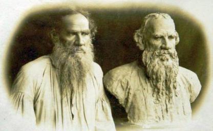 | Keywords: Tolstoy & Repin's sculpture of Tolstoy.jpg ru Лев Толстой со своим скульпту ным изоб ажением аботы И Е Репина Ясная Поляна 1891 год 1891 http //tolstoy ru/media/photos/ df 1846 dt 1922 q page 11 Е С Томашевич Custom license marker 2014 07 13 PD-RusEmpire Uploaded with UploadWizard Leo Tolstoy by Ilya Yefimovich Repin |