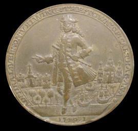 | Keywords: "Toma" de Cartagena por Vernon.jpg Eduardo Vernon durante la Guerra del Asiento o de la Oreja de Jenkins En ella aparece Vernon sosteniendo un bastón de mando mientras señala la ciudad con la flota inglesa a sus espaldas La leyenda dice Admiral Vernon Vhinning the Town of Carthagana es decir «El Almirante Vernon tomando la villa de Cartagena» Tras la abrumadora derrota sufrida por Vernon en Cartagena las medallas fueron retiradas aunque se conservaron algunas Museo Naval de Madrid Edward Vernon during the War of Jenkins' Ear The medal depicts admiral Vernon holding a command stick and finger pointing the city with his fleet behind him The medal says Admiral Vernon Vhinning the Town of Carthagana After the crushing defeat suffered by the English fleet in Cartagena the medals were retired but some were saved Naval Museum of Madrid own Avieso 1740 1 “ 1741 War of Jenkins' Ear Edward Vernon Naval battles involving Great Britain Battle of Cartagena de Indias Naval battles involving Spain Conflicts in 1741 Naval Museum of Madrid History of the Spanish Navy |