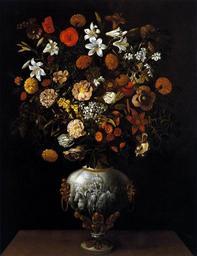 | Keywords: Tomás Hiepes - Vase of Flowers - WGA11414.jpg Artwork Creator Tomás Hiepes 1646 Oil on canvas size cm 115 86 Private collection accession number object history credit line WGA link 11414 http //www wga hu/art/h/hiepes/vase2 jpg http //www wga hu/html/h/hiepes/vase2 html PD-old-100 painting still-life Spanish 1601-1650 Tomás Yepes 1646 1646 paintings 1640s still life paintings WGA form painting WGA type still-life WGA School Spanish WGA time period 1601-1650 17th-century oil on canvas paintings 17th-century still life paintings of flowers Vases in still-life paintings 1640s paintings of flowers 17th-century still life paintings in private collections 1640s paintings in private collections 17th-century paintings in unidentified private collections |