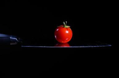 Keywords: tomato knife cook red black kitchen vegetables sharp cut frisch food eat healthy meal delicious bio