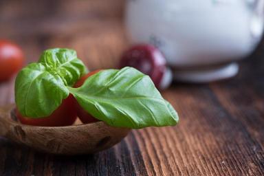 Keywords: tomatoes small tomatoes red basil green spice herbs close food-photography eat nutrition food natural product healthy delicious frisch healthy diet