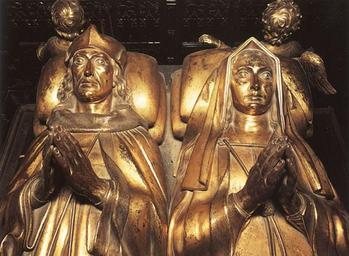 | Keywords: indoor Westminster Abbey, London The inscription on the tomb reads: “Here lies Henry the Seventh of that name, formerly King of England, son of Edmund, Earl of Richmond. He was created King on August 22 and immediately afterwards, on October 30, he was crowned at Westminster in the year of our Lord 1485. He died subsequently on April 21 in the 53rd year of his age. He reigned 23 years eight months, less one day” “Here lies Queen Elizabeth, daughter of the former King Edward IV, sister of the formerly appointed King Edward V, once the wife of King Henry VII, and the renowned mother of Henry VIII. She met her day of death in the Tower of London on the 11th day of February in the year of our Lord 1502 [Old Style dating], having fulfilled the age of 37 years” Translation of the inscription around the edge of the tomb: “Here is situated Henry VII, the glory of all the kings who lived in his time by reason of his intellect, his riches, and the fame of his exploits, to which were added the gifts of bountiful nature, a distinguished brow, an august face, an heroic stature. Joined to him his sweet wife was very pretty, chaste and fruitful. They were parents happy in their offspring, to whom, land of England, you owe Henry VIII” Westminster Abbey, London The inscription on the tomb reads: “Here lies Henry the Seventh of that name, formerly King of England, son of Edmund, Earl of Richmond. He was created King on August 22 and immediately afterwards, on October 30, he was crowned at Westminster in the year of our Lord 1485. He died subsequently on April 21 in the 53rd year of his age. He reigned 23 years eight months, less one day” “Here lies Queen Elizabeth, daughter of the former King Edward IV, sister of the formerly appointed King Edward V, once the wife of King Henry VII, and the renowned mother of Henry VIII. She met her day of death in the Tower of London on the 11th day of February in the year of our Lord 1502 [Old Style dating], having fulfilled the age of 37 years” Translation of the inscription around the edge of the tomb: “Here is situated Henry VII, the glory of all the kings who lived in his time by reason of his intellect, his riches, and the fame of his exploits, to which were added the gifts of bountiful nature, a distinguished brow, an august face, an heroic stature. Joined to him his sweet wife was very pretty, chaste and fruitful. They were parents happy in their offspring, to whom, land of England, you owe Henry VIII” Westminster Abbey, London The inscription on the tomb reads: “Here lies Henry the Seventh of that name, formerly King of England, son of Edmund, Earl of Richmond. He was created King on August 22 and immediately afterwards, on October 30, he was crowned at Westminster in the year of our Lord 1485. He died subsequently on April 21 in the 53rd year of his age. He reigned 23 years eight months, less one day” “Here lies Queen Elizabeth, daughter of the former King Edward IV, sister of the formerly appointed King Edward V, once the wife of King Henry VII, and the renowned mother of Henry VIII. She met her day of death in the Tower of London on the 11th day of February in the year of our Lord 1502 [Old Style dating], having fulfilled the age of 37 years” Translation of the inscription around the edge of the tomb: “Here is situated Henry VII, the glory of all the kings who lived in his time by reason of his intellect, his riches, and the fame of his exploits, to which were added the gifts of bountiful nature, a distinguished brow, an august face, an heroic stature. Joined to him his sweet wife was very pretty, chaste and fruitful. They were parents happy in their offspring, to whom, land of England, you owe Henry VIII” Henry VII Elizabeth of York Westminster.jpg Henry VII and Elizabeth of York in Westminster Abbey https //www flickr com/photos/60861613 N00/3372411261/ Lisby 2009-03-21 CC-zero Henry VII of England Elizabeth of York Tombs in Westminster Abbey |