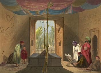 | Keywords: Tomb of Sultan Mahmud of Ghazni in 1839-40.jpg Mosque and Tomb of the Emperor Soolta Mahmood of Ghuznee This lithograph is taken from plate 10 of 'Afghaunistan' by Lietenant James Rattray The area around the tomb of Mahmud of Ghazni 998-1030 Rattray thought to be one of the most pleasing spots in Afghanistan The tomb was entered via a spacious courtyard watered by a clear stream Visitors would pass through covered passages to a garden framed by mulberry plum pear peach apricot cherry and rose trees Their blossoms hung over exquisitely carved marble tombs including Mahmud's This was a place of pilgrimage decorated with flowers and peacock feathers Afghan symbols of royalty The folding doors shown were reputed to be the famous Sandalwood Doors carried off in 1026 by Mahmud after his destruction of the Somnath Temple in Gujarat during the last of his devastatingly successful forays in India The British removed them from the tomb in 1842 laboriously transporting them to Agra Fort where they were found to be replicas of the original http //www bl uk/onlinegallery/onlineex/apac/other/019xzz000000562u00010000 html The British Library ~ 1839 Lieutenant James Rattray PD-Old PD-old-70 Mahmud of Ghazni History of Ghazni First Anglo-Afghan War 1839 lithographs Building interiors in Afghanistan Paintings of building interiors Men of Afghanistan in the 19th century |