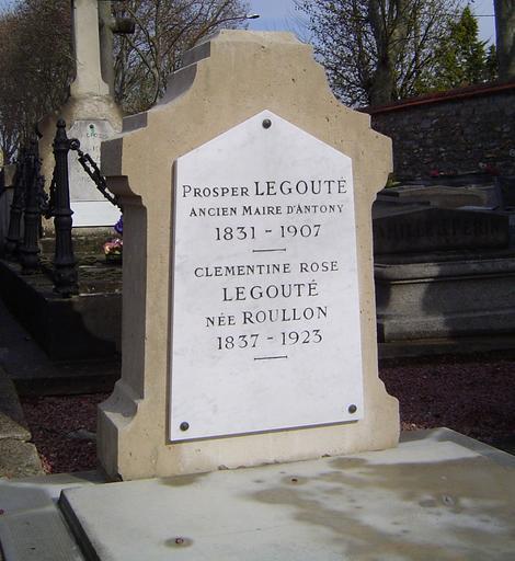 Keywords: Tombe de Prosper Legouté.JPG cimetière d'Antony Own 2008-05-08 AntonyB Cimetière d'Antony