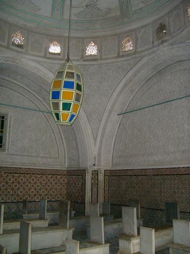 Keywords: Tombes femmes 2.JPG Tombes féminines surmontées d'une coupole couverte de stuc au Tourbet El Bey Tunis own 2008-09-29 Moumou82 Own work all rights released Public domain Tombs in Tourbet El Bey Ceiling light fixtures in Tunisia