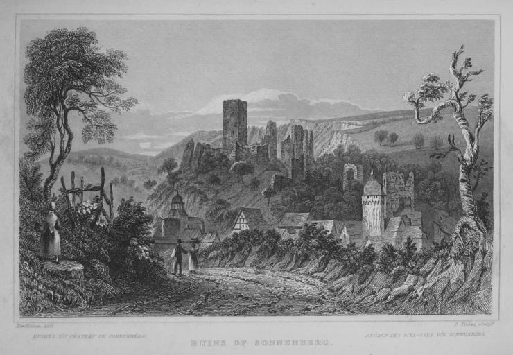 | Keywords: Tombleson Sonnenberg.jpg Steel engraving from Views of the Rhine by William Tombleson around 1840 Wiesbaden Castle of Sonnenberg scan by User Manfred Heyde ca 1840 Creator William Tombleson PD-old-100 Steel engravings Burg Sonnenberg Engravings of castles in Hesse William Tombleson |
