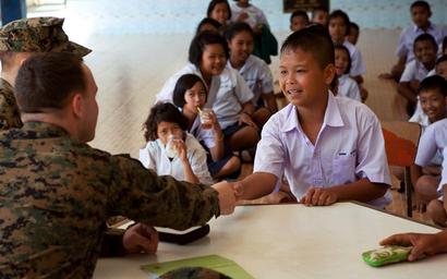 | Keywords: Tomorrow's Diplomat (6770662633).jpg Cpl Robert Edwards second from left III Marine Expeditionary Force civil affairs shakes hands with a Thai student at the Ban Non Daeng school in Pak Tong Chai Nakhon Ratchasima province Thailand Jan 24 2012 during exercise Cobra Gold 2012 Roberts visited the school to speak with faculty about construction being done by Royal Thai Indonesian and U S Marines forces in support of Cobra Gold 2012 Cobra Gold is a regularly scheduled joint/combined exercise designed to ensure regional peace and strengthen the ability of the Royal Thai Armed Forces to defend Thailand or respond to regional contingencies U S Marine Corps photo by Sgt Matthew Troyer https //www flickr com/photos/marine_corps/6770662633/ Tomorrow's Diplomat 2012-01-24 12 46 https //www flickr com/people/40927340 N03 Marines from Arlington VA United States PD-USGov United States Marine Corps Official Page https //flickr com/photos/40927340 N03/6770662633 2016-09-03 23 50 44 United States Government Work Nakhon Ratchasima Province United States armed forces in Thailand Cobra Gold 2012 |