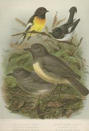 | Keywords: Tomtit & Robins.jpg North-Island Tomtit Myiomoira toitoi South-Island Tomtit Myiomoira macrocephala North-Island Robin Miro australis South-Island Robin Miro albifrons en Top left - South Island Tomtit Petroica macrocephala macrocephala Top right - North Island Tomtit Petroica macrocephala toitoi Bottom left - North Island Robin Petroica australis longipes Bottom right - South Island Robin Petroica australis australis Buller's A History of the Birds of New Zealand 2nd edition Published 1888 Published 1888 By J G Keulemans PD-old-auto-1923 1912 checked WikiProject Birds A History of the Birds of New Zealand by Buller Plate V Petroica macrocephala Petroica australis |