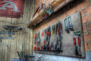 Keywords: Tonemapping.jpg Ein selbstgeschossenes Bild das mittels High Dynamic Range und Tone-Mapping Verfahren verändert wurde Der Auschnitt zeigt einen Werkzeug Wand in einer Schrauber-Garage 2006-07-31 own assumed Preddc2 Tool storage