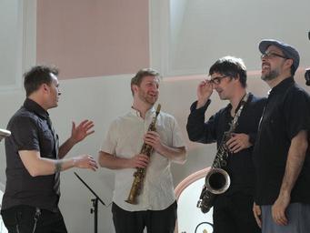 | Keywords: Tonspuren 2014 Rückert Stillman Rifflet Hollenbeck.jpg Tonspuren 2014 - Jochen Rückert Loren Stillman Sylvain Rifflet und John Hollenbeck nach einem Konzert im Treppenhaus des Kloster Irsee Festivalsommer 2014 Cc-zero Thomas Springer 2014-04-26 own Ordercrazy cc-zero User Ordercrazy/Credits Tonspuren 2014 Sylvain Rifflet Loren Stillman Jochen Rückert John Hollenbeck Uploaded with VicuñaUploader | ||||