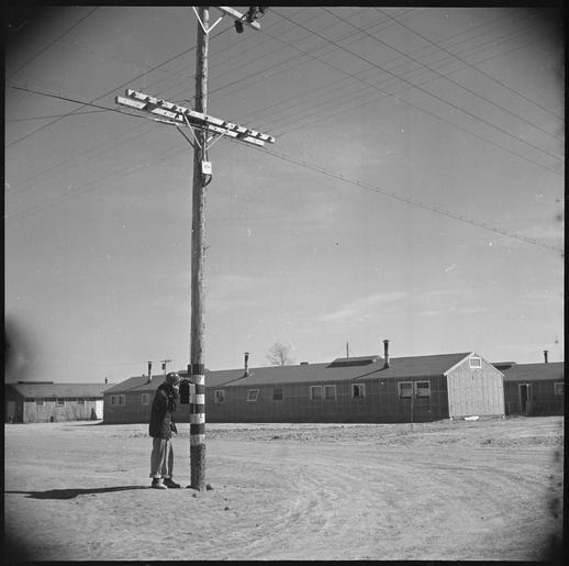 | Keywords: Topaz, Utah. An evacuee fireman checks with his chief from a fire alarm box, which is located on a . . . - NARA - 536995.tif  Scope and content The full caption for this photograph reads Topaz Utah An evacuee fireman checks with his chief from a fire alarm box which is located on a telephone pole These alarm boxes are conveniently located throughout the center General notes 536995 Local identifier 210-G-B320 Department of the Interior War Relocation Authority 02/16/1944 - 06/30/1946 NARA-Author Stewart Francis War Relocation Authority photographer Photographer 8464475 <br /> Still Picture Records Section Special Media Archives Services Division NWCS-S National Archives at College Park 8601 Adelphi Road College Park MD 20740-6001 1943-03-12 Record group Record Group 210 Records of the War Relocation Authority 1941 - 1989 Record group ARC 537 Central Photographic File of the War Relocation Authority compiled 1942 - 1945 Series ARC 536000 File unit File unit ARC Variant control numbers NAIL Control Number NWDNS-210-G-B320 yes Other versions <gallery> File Topaz _Utah _An_evacuee_fireman_checks_with_his_chief_from_a_fire_alarm_box _which_is_located_on_a_ _ _ _-_NARA_-_536995 tif tif File Topaz _Utah _An_evacuee_fireman_checks_with_his_chief_from_a_fire_alarm_box _which_is_located_on_a_ _ _ _-_NARA_-_536995 jpg jpg </gallery> NARA-cooperation PD-USGov Topaz War Relocation Center NARA TIF images with categorized JPGs |