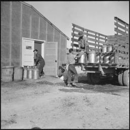 | Keywords: Topaz, Utah. Daily supply of milk delivered by young evacuee workers at the mess kitchen door. - NARA - 538796.tif Scope and content General notes 538796 Local identifier 210-G-E140 Department of the Interior War Relocation Authority 02/16/1944 - 06/30/1946 NARA-Author Parker Tom Photographer 4682167 <br /> Still Picture Records Section Special Media Archives Services Division NWCS-S National Archives at College Park 8601 Adelphi Road College Park MD 20740-6001 1942-10-20 Record group Record Group 210 Records of the War Relocation Authority 1941 - 1989 Record group ARC 537 Central Photographic File of the War Relocation Authority compiled 1942 - 1945 Series ARC 536000 File unit File unit ARC Variant control numbers NAIL Control Number NWDNS-210-G-E140 yes Other versions <gallery> File Topaz _Utah _Daily_supply_of_milk_delivered_by_young_evacuee_workers_at_the_mess_kitchen_door _-_NARA_-_538796 tif tif File Topaz _Utah _Daily_supply_of_milk_delivered_by_young_evacuee_workers_at_the_mess_kitchen_door _-_NARA_-_538796 jpg jpg </gallery> NARA-cooperation PD-USGov NARA TIF images with categorized JPGs Topaz War Relocation Center |