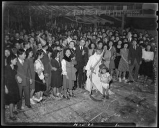 | Keywords: Topaz, Utah. Evacuees celebrate New Year's Eve. Japanese Americans at Central Utah Relocation Cent . . . - NARA - 539711.jpg Scope and content The full caption for this photograph reads Topaz Utah Evacuees celebrate New Year's Eve Japanese Americans at Central Utah Relocation Center celebrated reopening of the west coast with a big New Year's Eve party Joseph Aoki portrays Father Time and his son Tommy Baby New Year General notes 539711 Local identifier 210-G-H590 Department of the Interior War Relocation Authority 02/16/1944 - 06/30/1946 NARA-Author Mace Charles E photographer Photographer 8464453 <br /> Still Picture Records Section Special Media Archives Services Division NWCS-S National Archives at College Park 8601 Adelphi Road College Park MD 20740-6001 1944-12-31 Record group Record Group 210 Records of the War Relocation Authority 1941 - 1989 Record group ARC 537 Central Photographic File of the War Relocation Authority compiled 1942 - 1945 Series ARC 536000 File unit File unit ARC Variant control numbers NAIL Control Number NWDNS-210-G-H590 Other versions <gallery> File Topaz _Utah _Evacuees_celebrate_New_Year's_Eve _Japanese_Americans_at_Central_Utah_Relocation_Cent_ _ _ _-_NARA_-_539711 tif tif File Topaz _Utah _Evacuees_celebrate_New_Year's_Eve _Japanese_Americans_at_Central_Utah_Relocation_Cent_ _ _ _-_NARA_-_539711 jpg jpg </gallery> NARA-cooperation PD-USGov Topaz War Relocation Center |