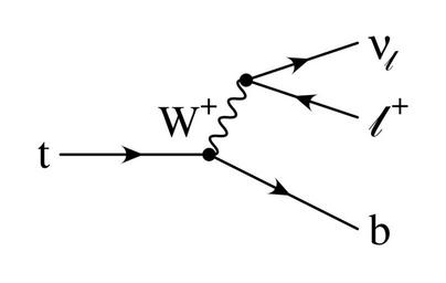 | Keywords: Topdecay leptonic.svg en Decay t †’ b ν<sub><math>\ell</math></sub> <math>\ell</math><sup>+</sup> of a top quark into a bottom quark a neutrino and an antilepton de Zerfall t †’ b ν<sub><math>\ell</math></sub> <math>\ell</math><sup>+</sup> eines Top Quarks in ein Bottom Quark ein Neutrino und ein Anti-Lepton 2016-07-03 own Blibla other versions cc-zero Feynman diagrams |