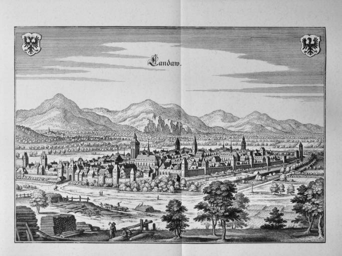 Keywords: Topographia Alsatiae (Merian) p 013.JPG p_012 p_014 History of Landau in der Pfalz 1663 Coats of arms of Landau in der Pfalz