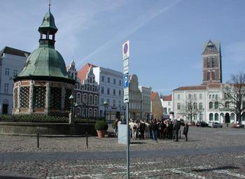 Keywords: Torget i Hansabyen Wismar.jpg Wismarer Wasserkunst auf dem Marktplatz Torget i Hansabyen Wismar own date Margareth Market square in Wismar Wasserkunst Wismar
