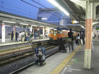 | Keywords: Toritetsu at Ageo Station 20091101 2.jpg Japanese railfan photographers called Toritetsu lang ja 撮り鉄 in Japanese photographing the Commemorative Train of 120th Anniversary of Ryōmō Line at Ageo Station <br /> Some of them are not good manners they often acts such dangerous to flock to the edge of the platform Photographed by Vantey 2009-11-01 Uploader; Vantey <gallery> File Toritetsu at Ageo Station 20091101 1 jpg File Toritetsu at Ageo Station 20091101 1 jpg </gallery> Taken with Canon PowerShot SX100 IS Files uploaded by Vantey Trainspotting in Japan JNR 115 JR East Ageo Station Night in Saitama prefecture Rail transport events in Japan 2009 events in Japan November 2009 in Japan 2009-11-01 |