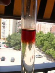 Keywords: Tornasol en solucion acida.JPG Tornasol en solución de ácido clorhídrico pH 1 se tinta de color rojo Litmus in hydrochloric acid colores red 2006-06-30 own assumed Carfergar1 thumb left 200px Litmus Natural pH indicators Test tubes