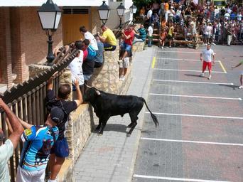 Keywords: Toros plaza del Carmen Molinicos.JPG es Fotografía alusiva a las fiestas de Molinicos con toros en la plaza de Nuestra Señora del Carmen Iglesia en septiembre own Siempremolinicos Cc-zero Molinicos Running of the Bulls in Spain