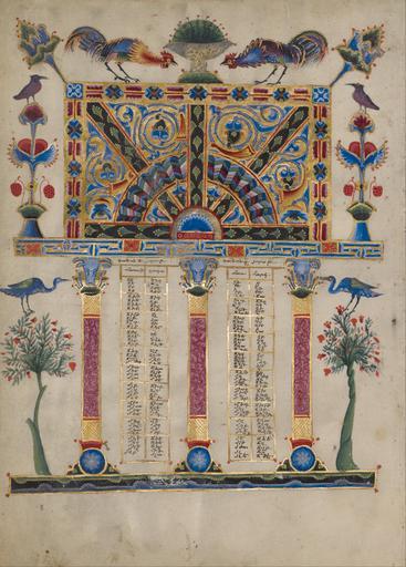 | Keywords: T'oros Roslin (Armenian, active 1256 - 1268) - Canon Table Page - Google Art Project (6866789).jpg 1256 1268 active 1256 - 1268 4191051 T'oros Roslin Armenian Armenian 1256 - 1268 /collection/the-j-paul-getty-museum/artwork/canon-table-page-toros-roslin-armenian-active-1256-1268/6866789/ T'oros Roslin Armenian active 1256 - 1268 illuminator /artist/toros-roslin/4485067/ 4485067 /collection/the-j-paul-getty-museum/ The J Paul Getty Museum 343005 http //www getty edu/museum 3/13/2012 12 00 13 AM /collection/the-j-paul-getty-museum/artwork/canon-table-page-toros-roslin-armenian-active-1256-1268/6866789/ 1256 1256 Birds Tempera and gold paint on parchment 265 6866789 True 1256 3/25/2012 8 45 56 PM lido getty edu-gm-obj112319 http //www getty edu/art/gettyguide/artObjectDetails artobj 112319 http //www getty edu/legal/copyright html Folio 1250 1260 Hromklay Armenia Creation w190 x h265 cm 1256 False 0 716796875 Part canon-table-page-toros-roslin-armenian-active-1256-1268 Canon Table Page c 190 Tempera and gold paint on parchment Birds http //www getty edu/legal/copyright html special url_id WAEO3v3VjiiCcQ PD-old-100-1923 1268 Google Art Project works by T'oros Roslin 1256 works MS 59 Getty museum - Leaves from Zeytun Gospels Canon tables |