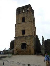 | Keywords: Torre de la Catedral, Panamá Viejo.jpg es Sobre la catedral y su entorno existe bastante literatura aunque queda muchos detalles por investigar Según la historiografía la actual catedral fue la tercera o quizás la cuarta iglesia en ese sitio Hubo una primera iglesia de madera construida poco después de la fundación de la ciudad que era estrecha y tenía una sola nave En 1540 después de un incendio se quiso reconstruirla en otro sitio de la plaza mayor pero el proyecto no se llevó a cabo; no está claro si la iglesia existente se arregló o se reconstruyó completamente Los cimientos encontrados en el medio de la nave actual durante una prospección arqueológica en 2000 pueden ser de esta iglesia Según la historiadora sevillana María del Carmen Mena García la catedral se amplió y reedificó hacia 1580; también esta iglesia era de madera aunque de tres naves La actual catedral se construyó de 1619 a 1626 por iniciativa del obispo Francisco de Cámara Los restos coinciden con la descripción de Juan Requejo y Salcedo 1640 es de cantería y mampostería toda enladrillada con tres anchas naves de bastante longitud de diez lumbres unos 40 metros con estantería de un palo fortísimo que produce la tierra llamado maría con basas de cantería y su enmaderamiento muy bien labrado de cedro Consta que en 1644 hubo un incendio pero no se sabe qué efecto tuvo en la iglesia La torre en todo caso está mucho mejor construida que el resto de la iglesia y es probable que no sea coetánea con ella puede ser tanto anterior como posterior Del cabildo que está separado de la torre de la catedral por un estrecho callejón hay bastante información Consta que el cuerpo principal que tenía un portal hacia la plaza fue construido a inicios del siglo XVII De las cuatro casas que ocupan el resto de la manzana no se sabe nada concreto es Estado de Conservacion del Monumento Torre de la Catedral El estado de conservación de la catedral es relativamente bueno No son visibles problemas por asentamientos ya que el conjunto se encuentra cimentado sobre roca sólida La disposición en cruz latina de la catedral todavía es legible ya que los muros que contenían las capillas laterales y el altar mayor poseen suficiente altura para ser interpretados Estos muros están construidos en mampostería de cal y canto con aparejo en hiladas; todos ellos han perdido sus recubrimientos originales Como elementos singulares se aprecian unos cuantos trozos de enfoscados y revoques Se destaca la utilización del ladrillo para resolver detalles en las jambas dinteles y empotramientos de vigas maestras De la estructura de la cubierta no quedan restos materiales sólo se puede deducir el desarrollo del techo en las áreas donde los coronamientos de los muros poseen huellas de empotramientos o vestigios de drenajes pluviales En la catedral el elemento que mejor se destaca es su torre de 27 de metros de altura cuya base mide 6 5 x 6 5 metros en el interior La antigua ubicación de los forjados es claramente visible los huecos para los empotramientos están abiertos y terminados en ladrillo Dentro de la torre había 3 niveles El acceso a estos niveles se realizaba por medio de una escalera de caracol colocada en su fachada norte En la actualidad sin embargo la escalera se ha perdido quedando únicamente el foso De mi Camara la tome con mi clase de expresion Marjorie Arjona 2009-09-14 Catedral de Panamá Viejo |