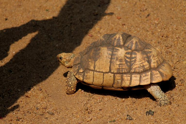 Keywords: tortoise animals mammals reptiles reptilian hard shells protective covering brown sandy soil grounds still life slow shadows fauna bright day nature wildlife