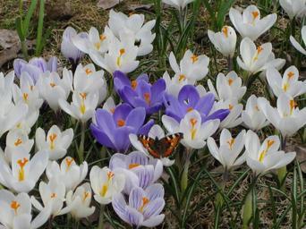 Keywords: tortoiseshell crocus crocuses white purple spring flowers