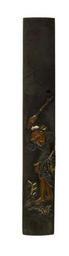 | Keywords: Toshiyuki - Kozuka with a Chinese Man - Walters 51722.jpg A man in Chinese dress is shown with his arm raised over his head He holds a stick in his right hand and is gesturing to the ground with his left This may be a reference to a specific person On the ground are some grasses and stones The artist signed the kozuka on the reverse century 19 Edo shibuichi copper gold cm 9 6 l accession number 51 722 19411 Henry Walters Baltimore date and mode of acquisition unknown Walters Art Museum Henry Walters Acquired by Henry Walters Signature Ryƻresshi Toshiyuki place of origin Mito Japan Walters Art Museum license Kozuka in the Walters Art Museum Toshiyuki Media contributed by the Walters Art Museum needs category review |