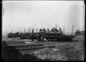 | Keywords: the field museum columbian move blackandwhite monochrome outdoor black and white Totem pole on train flatbed railroad car in the process of being moved by several men. Moving contents of Museum from Jackson Park to Grant Park. Museum move series. 1920. Original size and material: 5x7 inch glass negative Digital Identifier: CSGN40492 Part of the Illinois Urban Landscapes Project: www.fieldmuseum.org/urbanlandscapes/ Totem pole on train flatbed railroad car in the process of being moved by several men. Moving contents of Museum from Jackson Park to Grant Park. Museum move series. 1920. Original size and material: 5x7 inch glass negative Digital Identifier: CSGN40492 Part of the Illinois Urban Landscapes Project: www.fieldmuseum.org/urbanlandscapes/ |