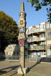 Keywords: Totempaal door Dick Elffers.jpg Totempaal door Dick Elffers - Snoystraat te Gouda Own 2008-09-26 Gouwenaar Sculptures in Gouda Dick Elffers Snoystraat Gouda