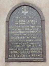 | View Original: | Toul (Meurthe-et-Moselle) Plaque Jeanne d'Arc, justice 1428.JPG (2736x3648) | |||
